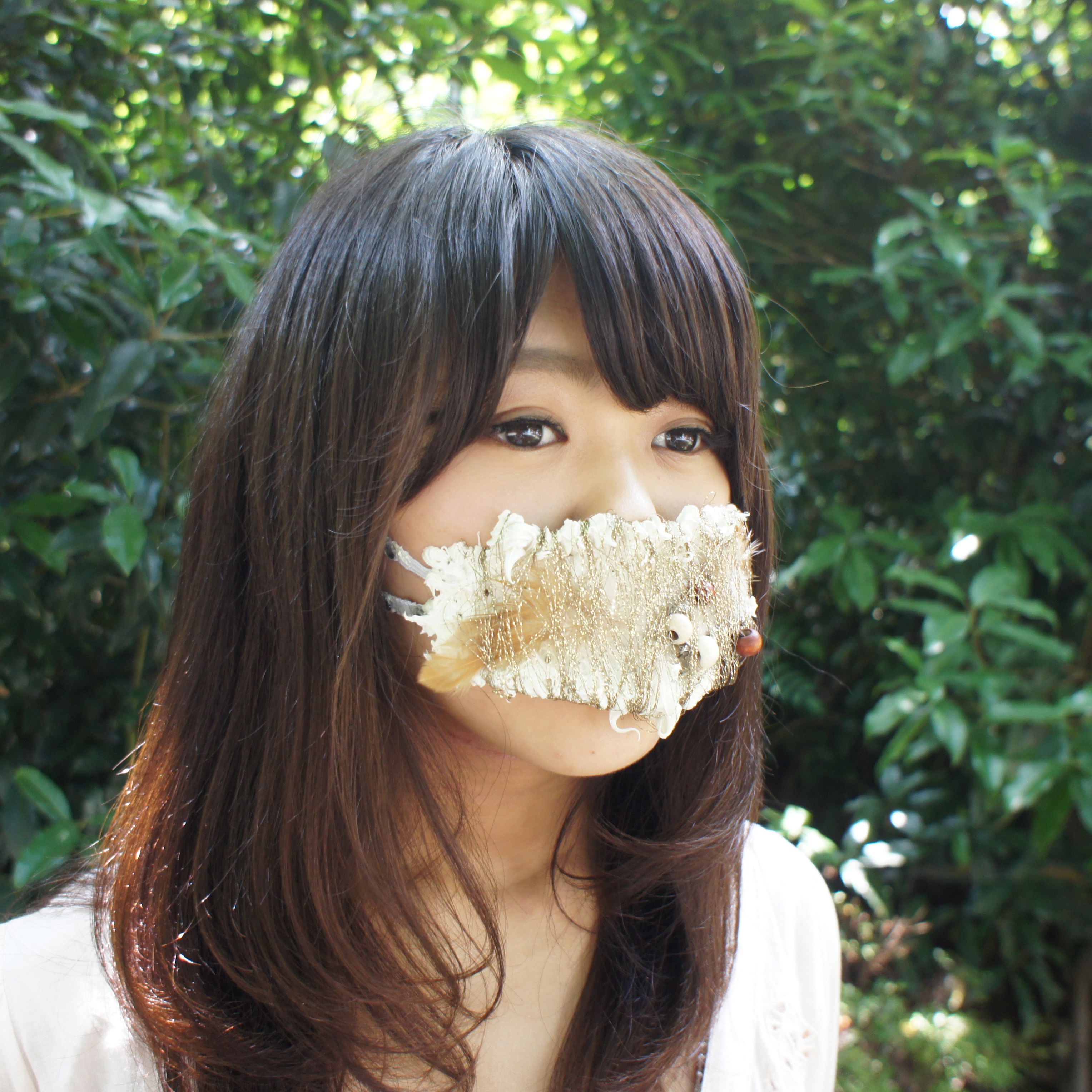 モデルから「自分の顔の好きなところと嫌いなところ」を聞き、好きな色や素材を聞きながら 「不器用な自分をデコる様に」マスクを作成します。