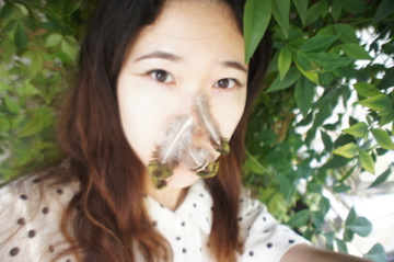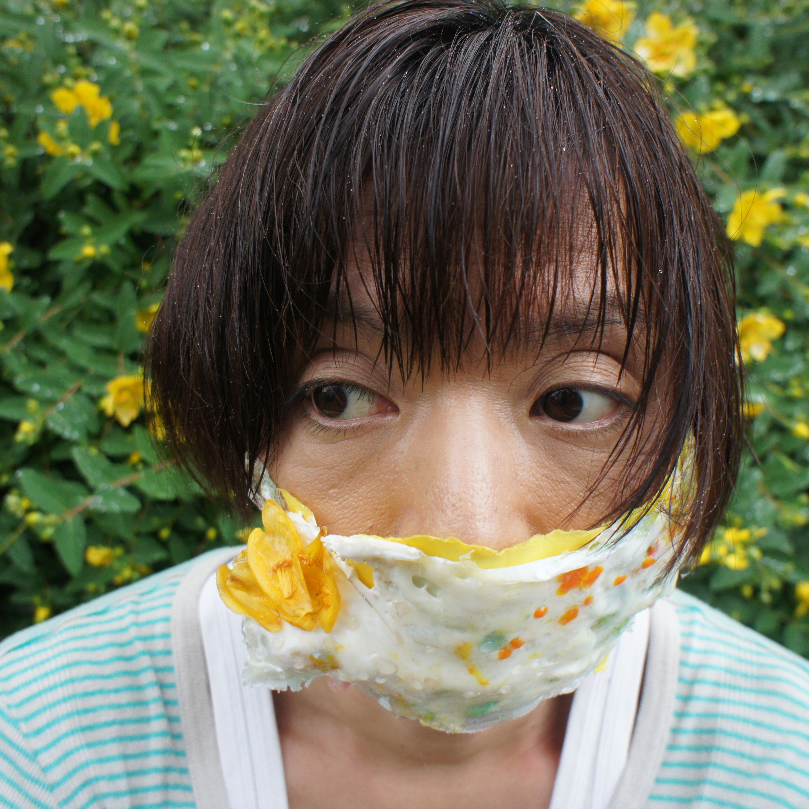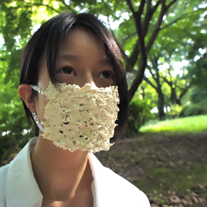 「マスク」は、外見を隠す面とバイキンから守る面を持っています。 これは、2009年から続けているモデルと共同で作ったパフォーマンス写真です。