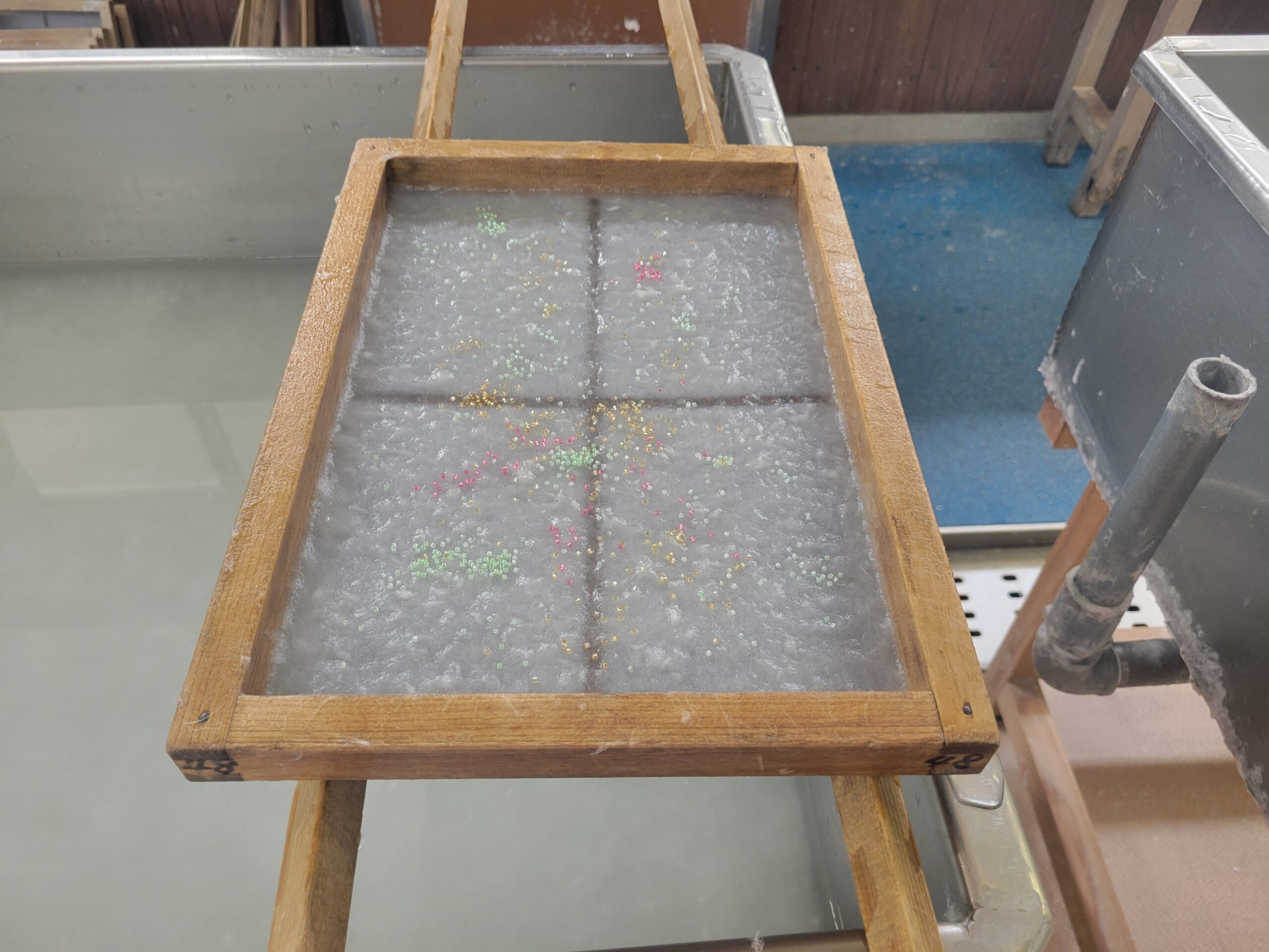 エレナさんに「マシンで作った紙がリサイクル美しい作品になってる。そしてリサイクルで汚いのではなくてコントロールされてる美しい。」と教えてもらって嬉しいです