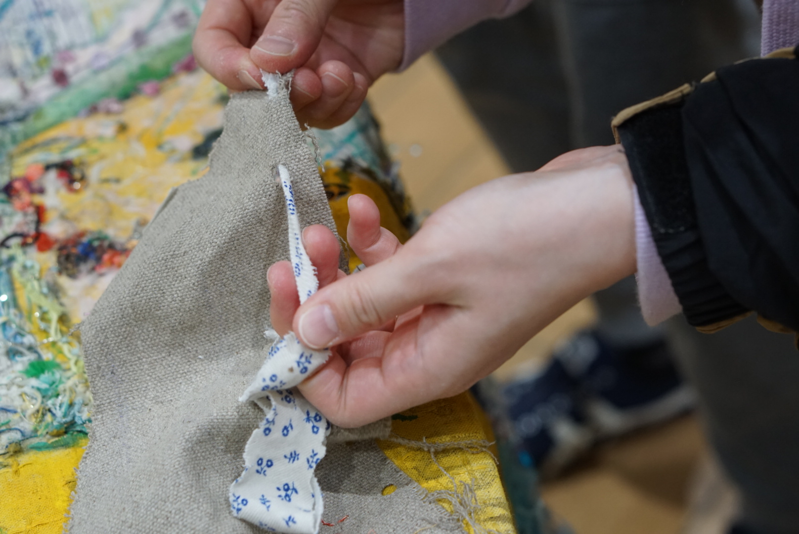 「私は、ソーイングを通して、排他された人や、社会的に押し付けられている役割、そして、それらを内面化している自分自身を愛そうとしています。特に、私自身が母親としての社会的役割を他人の目を気にして行っているなと感じる時、私は私自身を排他された人のようだと思います。