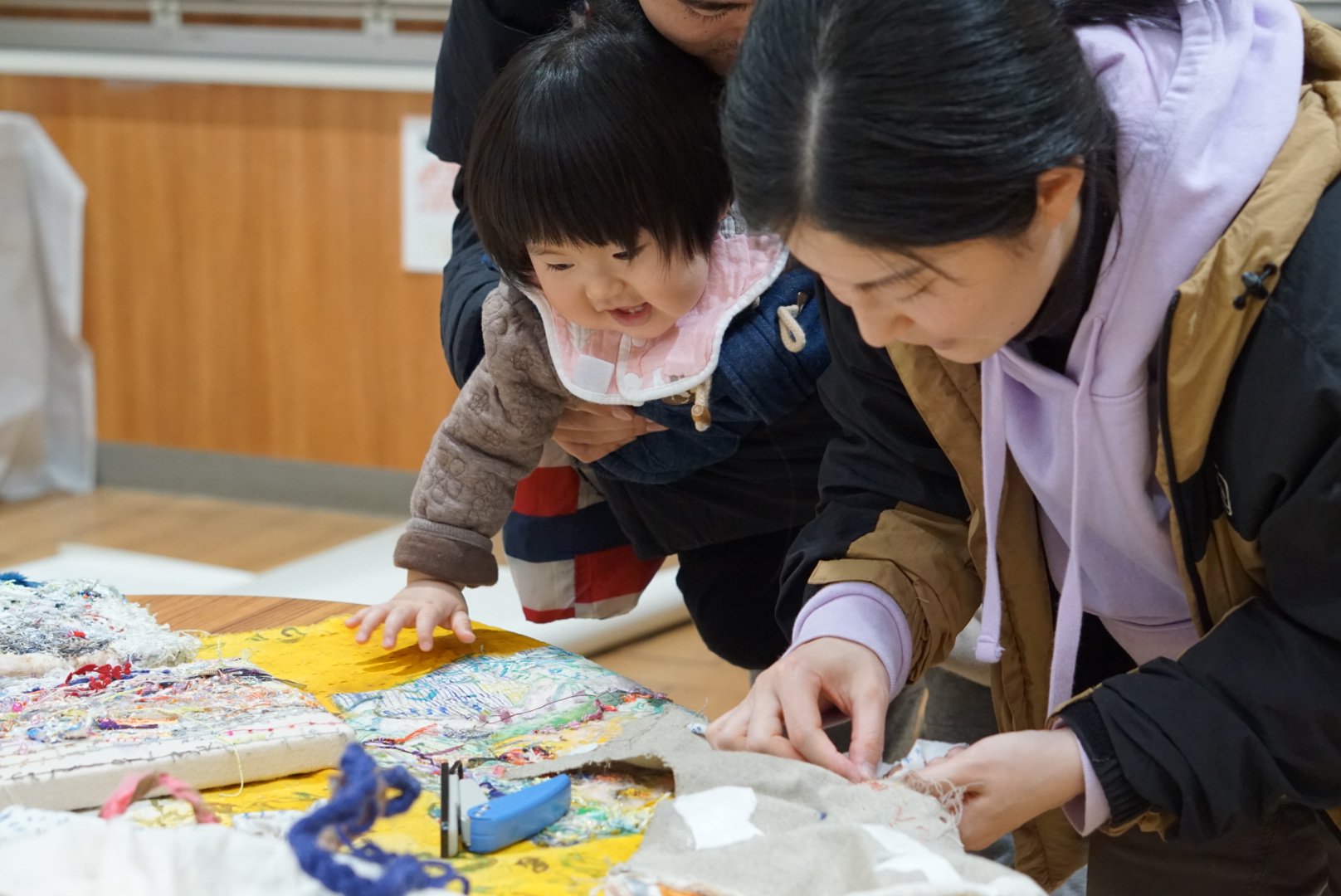 Medium: Felt, fleece, Yarn, Old cloth, Ripped yarn (ripped cloth), Banana leaves from Hirono Town, Beads, Braid, Acrylic paint, Wood, Wire